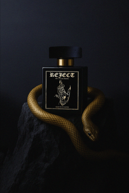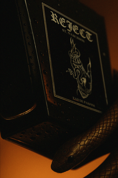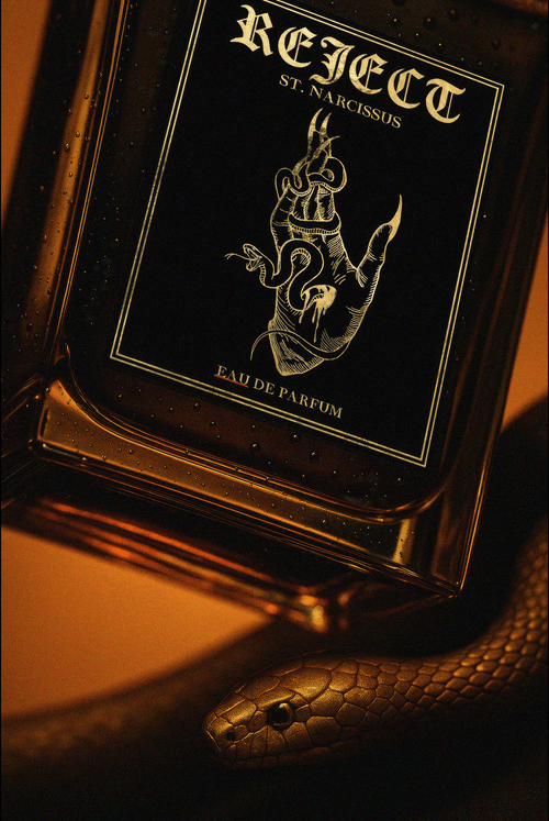 Commissioned to create the full visual world for the limited-edition fragrance launched by Reject and St. Narcissus—from bottle labels and tags to printed materials and event visuals.